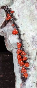 met zijn rode bloedkoralen