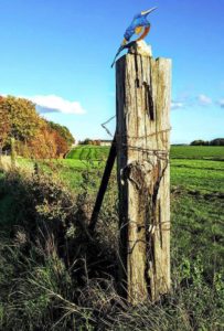 Hij is onderdeel van een afrastering, door de boer geplaatst om zijn land af te schermen. Of om te voorkomen dat het vee het hazenpad koos. Ooit legt deze weidepaal het loodje, ligt hij gestrekt langs de rand van de akker. Hij zal verteerd worden door de natuur, diezelfde natuur waar hij zolang deel van uitmaakte.