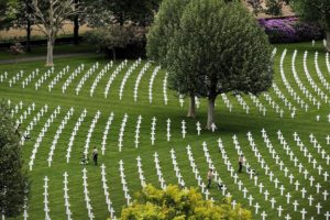 Het is elk jaar weer een indrukwekkend moment op de Amerikaanse militaire begraafplaats te Margraten.